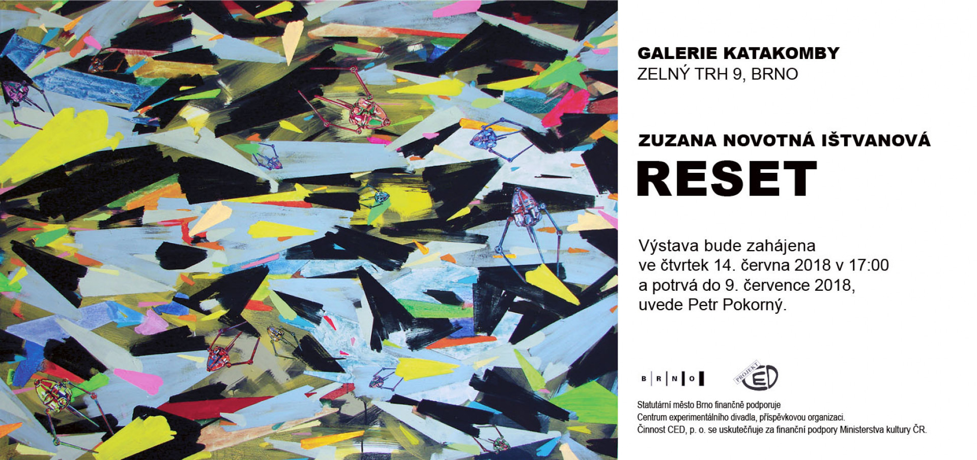 Výstava bude zahájena ve čtvrtek 14. června 2018 v 17:00 a potrvá do 9. července 2018, uvede Petr Pokorný. Výstava se koná v Galerii Katakomby.