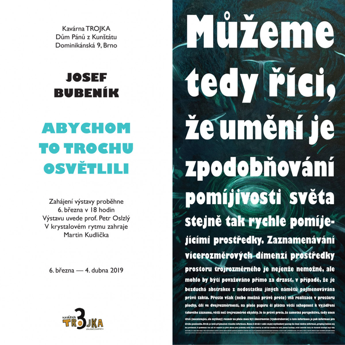 Vernisáž se koná ve čtvrtek 22. 3. 2018 v Galerii Platinium (Veveří 111, Brno).