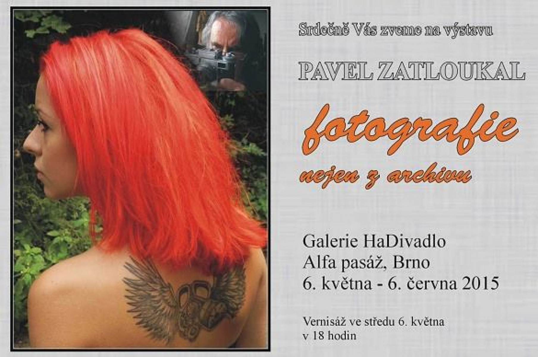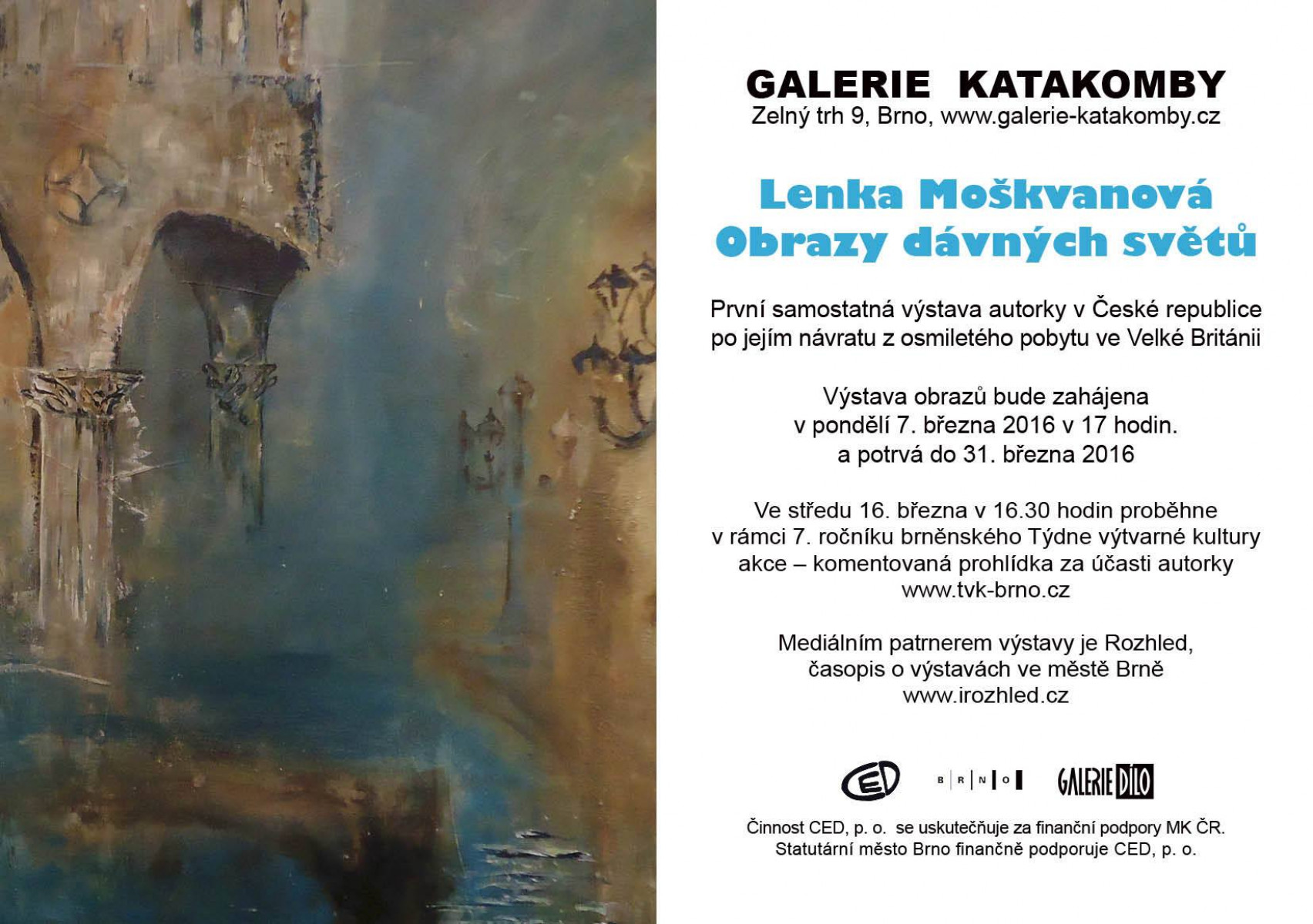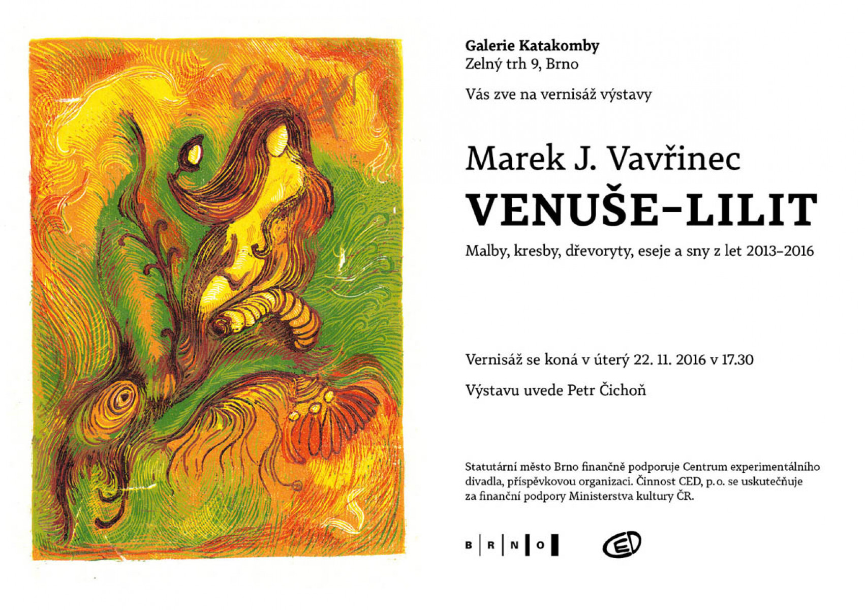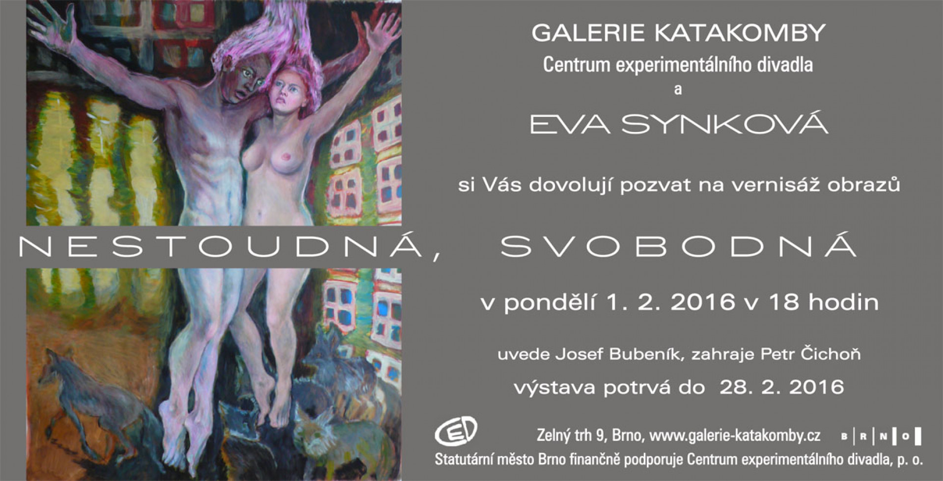 Vernisáž se uskuteční v úterý 10.května 2016 v Galerii Katakomby pod Husou na provázku (Zelný trh 9, Brno) v 18:00 hod.