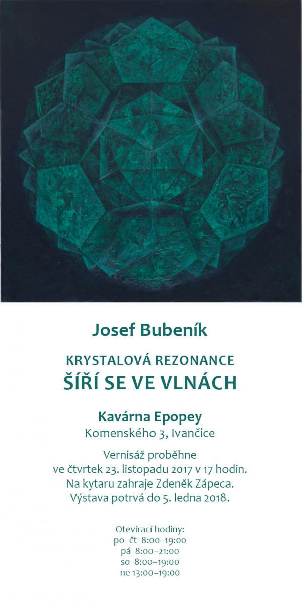 Vernisáž proběhne ve čtvrtek 23. listopadu 2017 v 17 hodin. Na kytaru zahraje Zdeněk Zápeca.