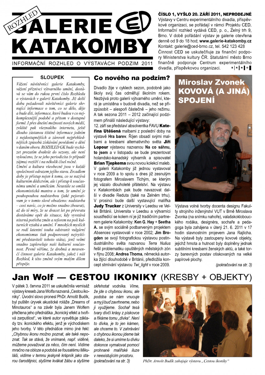 Vážení návštěvníci galerie Katakomby, vážení příznivci výtvarného umění, dostává se vám do rukou první číslo Rozhledu o výstavách v galerii Katakomby.