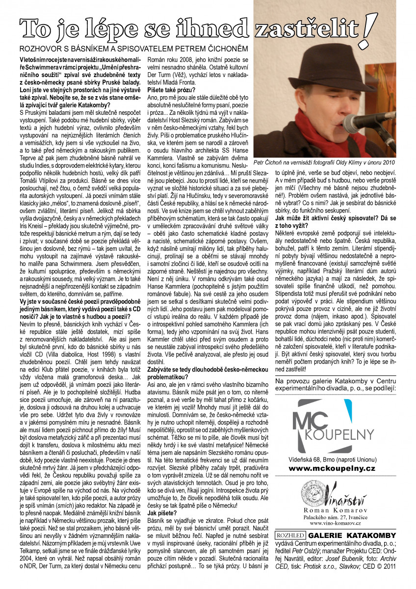 Umění a kultura všeobecně jsou v každé společnosti odrazem jejího stavu. Zrcadlem doby je přístup nejen k tomu, co se nazývá kulturním dědictvím, ale i přístup k současnému umění a umělcům. Neustále se omílá ekonomistická mantra o tom, že umění je pouhopouhou nadstavbou (jaké pejorativum je v tomto slově obsaženo: nadstavba – cosi navíc, co je možno snadno zbourat), až do té míry, že se dvacet let po převratu dostáváme opět do situace, kdy vyvstává niterná potřeba změn a reforem na poli kulturních vztahů a umění. V mnohých myslích se rodí latentní touha odstranit vulgární ekonomismus (tak podporovaný nejvyššími představiteli tohoto státu), jenž velmi snadno zapleveluje naši kulturní současnost. Pevně věříme, že drobná a mravenčí činnost galerie Katakomby, jakož i náš Rozhled, k této změně svým malým dílem přispěje.