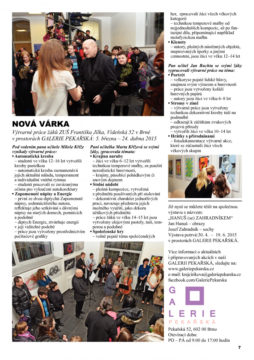 NOVINKA Na našich stránkách www se podařilo díky našemu spolupracovníkovi J.Henslovi rozjet projekt VIRTUÁLNÍCH PROHLÍDEK výstav soukromých galerií v Brně.Z pořádaných výstav pak lze vidět nejen díla výtvarníků, ale můžete si vychutnat i genius loci galerijních prostorů. více »