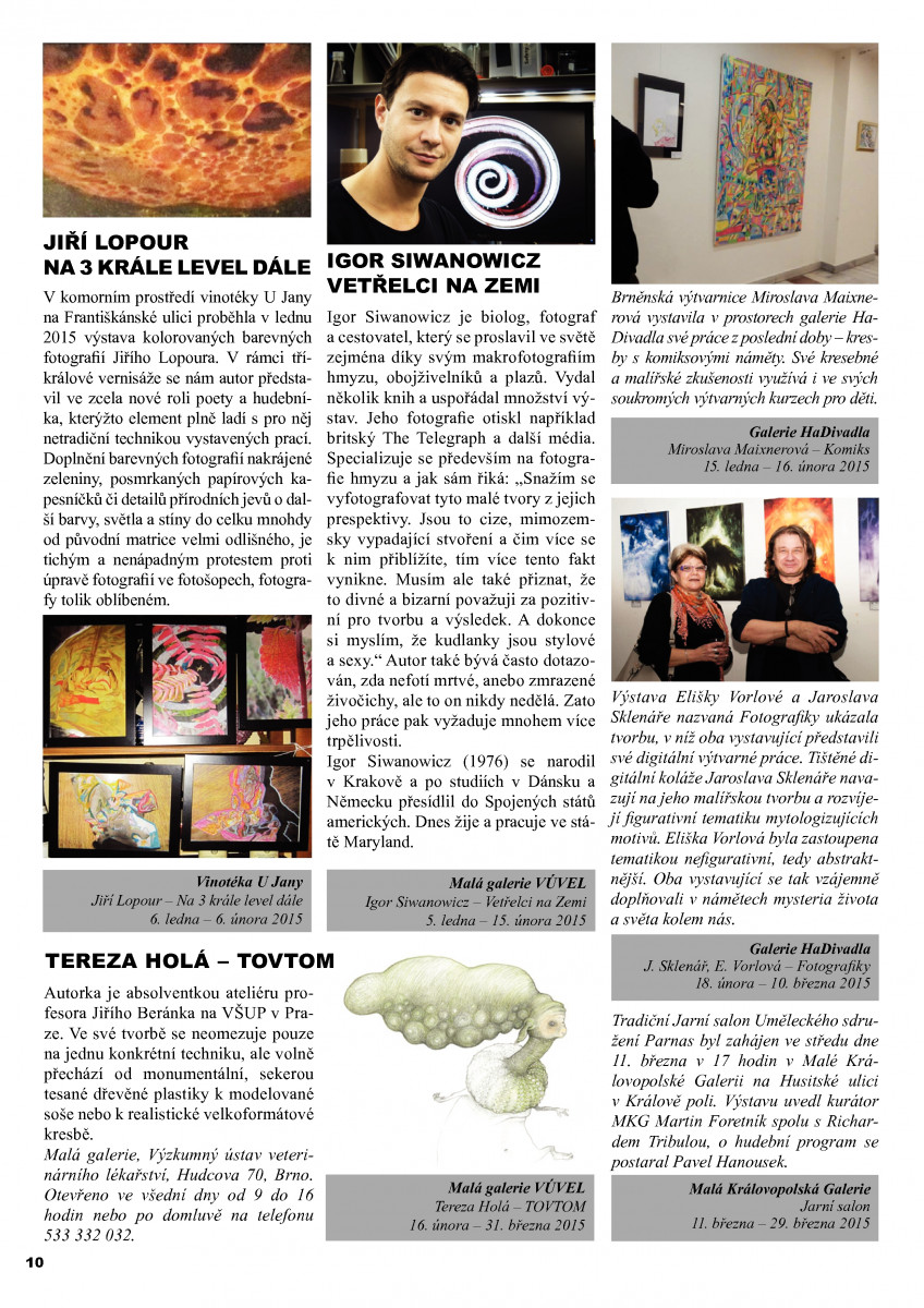 Museo Municipal – Cartago, Kostarika Dne 6. března 2016 se uskutečnila v bývalém hlavním městě Kostariky (Cartago) vernisáž mezinárodní kolektivní výstavy surrealismu, na které se účastní 107 umělců z 26 zemí celého světa.Mezi jinými jsou zde zastoupeni i tři výtvarníci z Brna: Josef Bubeník, Jiří Lopour a Jan Wolf. Výstava potrvá od 7. 3. do 7. 5. 2016   více »