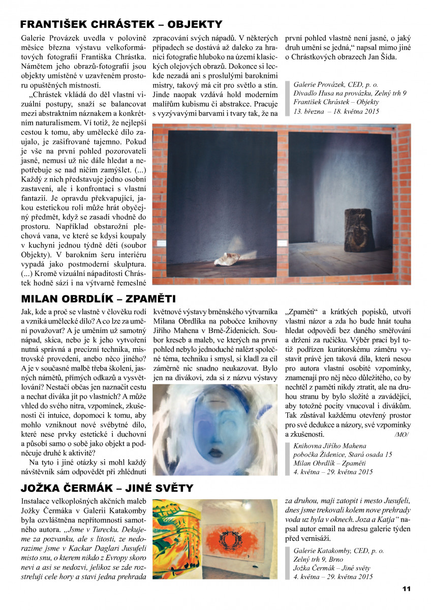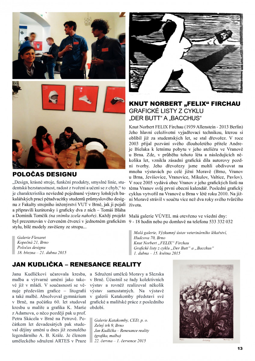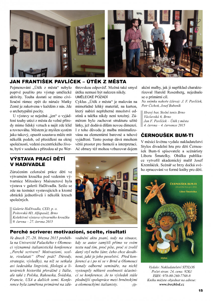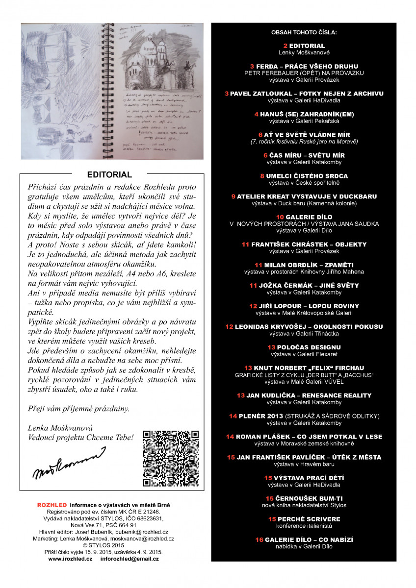 V redakci Rozhledu doufáme, že jste rok 2015 strávili přesně podle vašich představ. A obohatili jste se o chvilky strávené nad příjemným čtením dokumentujícím současné výtvarné dění a uměleckou aktivitu v Brně a okolí. Z redakce Rozhledu Vám všem děkujeme za Vaši přízeň. Dovolte nám popřát Vám sílu vstoupit do nového roku s nadějí a optimismem. více »