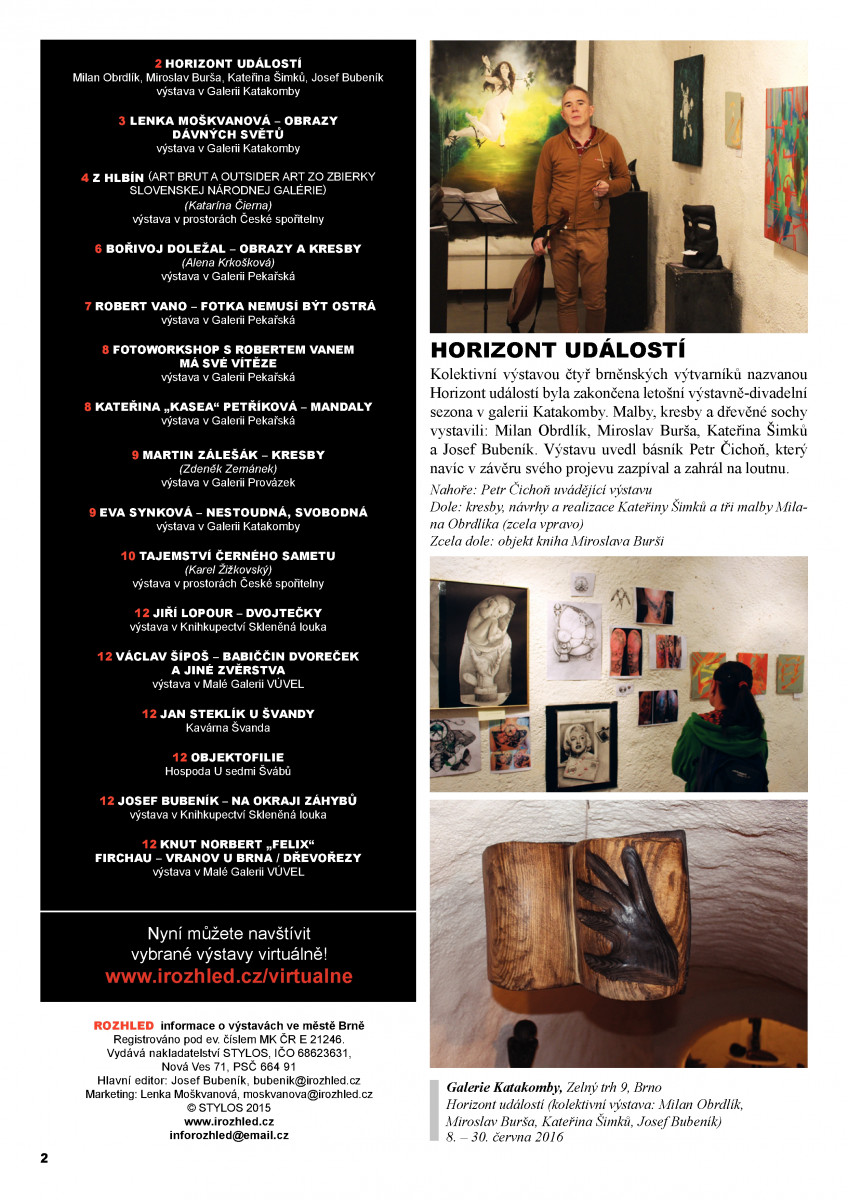 V redakci Rozhledu doufáme, že jste rok 2015 strávili přesně podle vašich představ. A obohatili jste se o chvilky strávené nad příjemným čtením dokumentujícím současné výtvarné dění a uměleckou aktivitu v Brně a okolí. Z redakce Rozhledu Vám všem děkujeme za Vaši přízeň. Dovolte nám popřát Vám sílu vstoupit do nového roku s nadějí a optimismem. více »