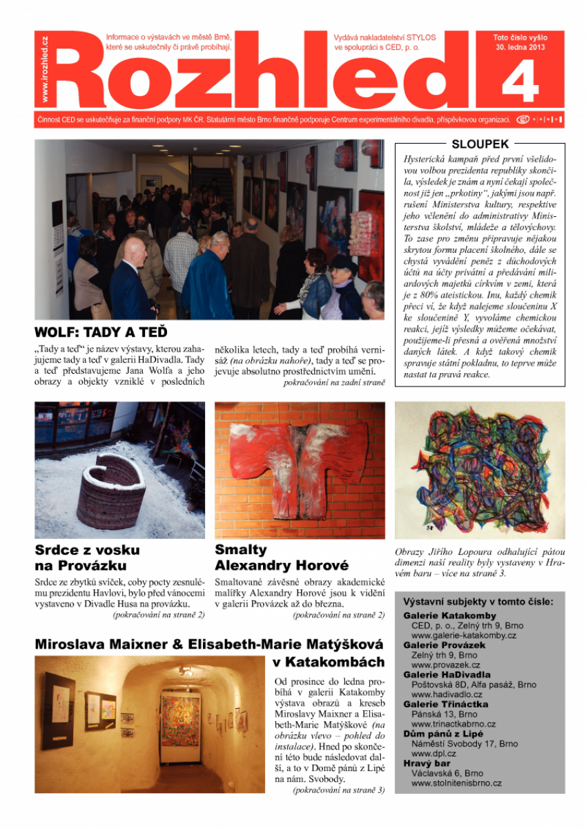 Hysterická kampaň před první všelidovou volbou prezidenta republiky skončila, výsledek je znám a nyní čekají společnost již jen „prkotiny“, jakými jsou např. rušení Ministerstva kultury, respektive jeho včlenění do administrativy Ministerstva školství, mládeže a tělovýchovy. To zase pro změnu připravuje nějakou skrytou formu placení školného, dále se chystá vyvádění peněz z důchodových účtů na účty privátní a předávání miliardových majetků církvím v zemi, která je z 80% ateistickou. Inu, každý chemik přeci ví, že když nalejeme sloučeninu X ke sloučenině Y, vyvoláme chemickou reakci, jejíž výsledky můžeme očekávat, použijeme-li přesná a ověřená množství daných látek. A když takový chemik spravuje státní pokladnu, to teprve může nastat ta pravá reakce.