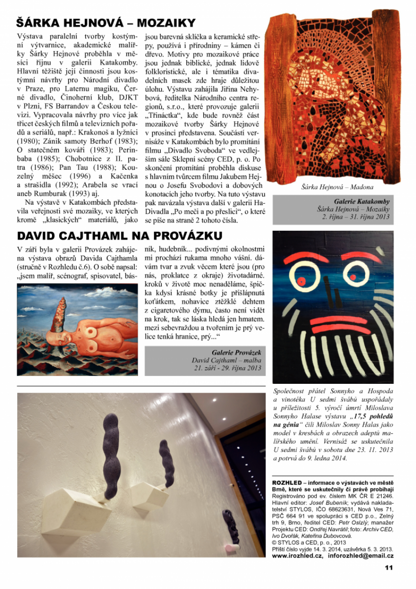 V redakci Rozhledu doufáme, že jste rok 2015 strávili přesně podle vašich představ. A obohatili jste se o chvilky strávené nad příjemným čtením dokumentujícím současné výtvarné dění a uměleckou aktivitu v Brně a okolí. Z redakce Rozhledu Vám všem děkujeme za Vaši přízeň. Dovolte nám popřát Vám sílu vstoupit do nového roku s nadějí a optimismem. více »